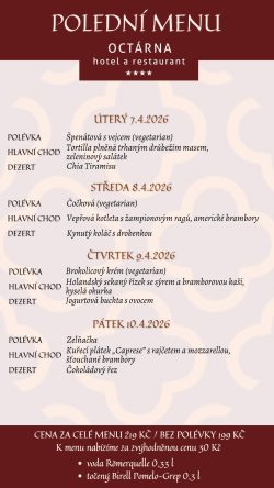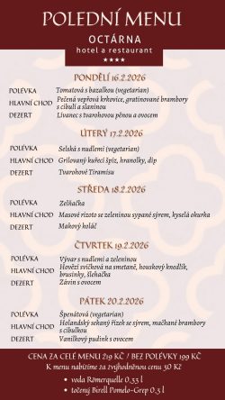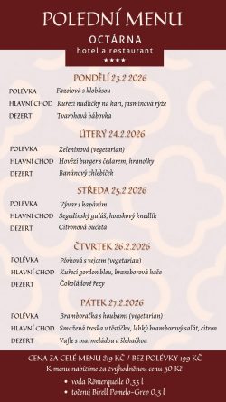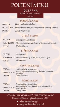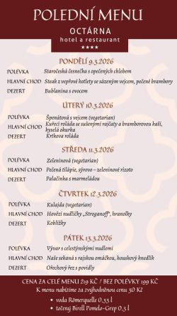 Hotel Octárna nabízí ubytování s celkovou kapacitou 49 lůžek. Všechny pokoje jsou stylově vybaveny, mají vlastní sociální zařízení s vysoušečem vlasů, pantoflemi a kvalitní hotelovou kosmetikou Manufaktura, kufrbox, TV s plochou obrazovkou, wi-fi připojení, telefon a minibar. Všechny pokoje v podkroví jsou klimatizované. Převážná část pokojů je dvoulůžkových, pro rodiny je k dispozici čtyřlůžkový pokoj v Depandanci, nebo třílůžkový apartmán, které mají ložnici zvlášť pro rodiče a zvlášť pro děti. Všechny apartmány i pokoj v Depandanci jsou vybaveny varnými sety pro přípravu kávy a čaje. Našim hostům a návštěvníkům restaurace nabízíme bezplatné parkování v uzavřeném areálu a možnost úschovy kol v uzamykatelných prostorech. Úroveň našeho ubytování snese ta nejpřísnější měřítka na čistotu, pohodlí a klid.